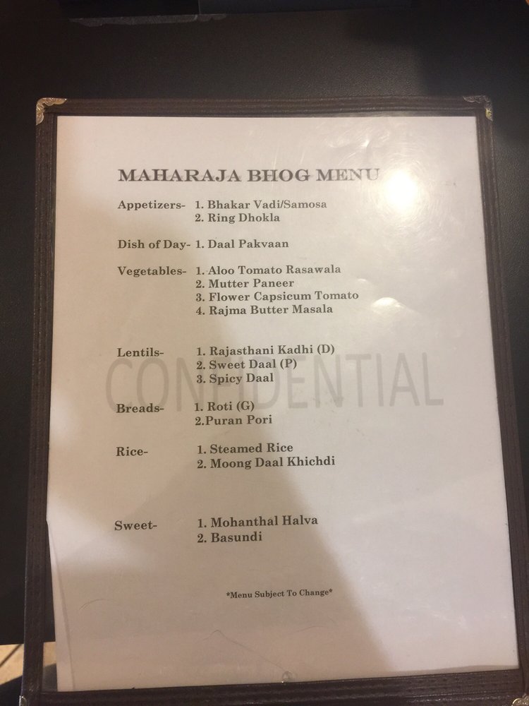 Introducing the menu at Maharaja Bhog, a top-rated Indian vegetarian restaurant in Houston. Known for its AYCE dinner thali, where customers can indulge in over 20 dishes for a fixed price per person. The authentic flavors and warm atmosphere make it a true gem for those craving Gujarati goodness. The menu offers a variety of dishes like lima beans, eggplant, lentils, paneer, kadi, chapathi, puri, dhokla, aloo tikki, khichdi, and pulav. The fresh, pillowy roti is addicting, and the appetizers, sauces, and desserts are equally satisfying. Guests praise the attentive service, with waiters constantly refilling dishes as you eat. The set vegetarian buffet style service ensures a seamless dining experience. With its bustling weekend crowds and loyal fans coming from out of state, Maharaja Bhog promises a memorable dining experience for all vegetarian food enthusiasts.